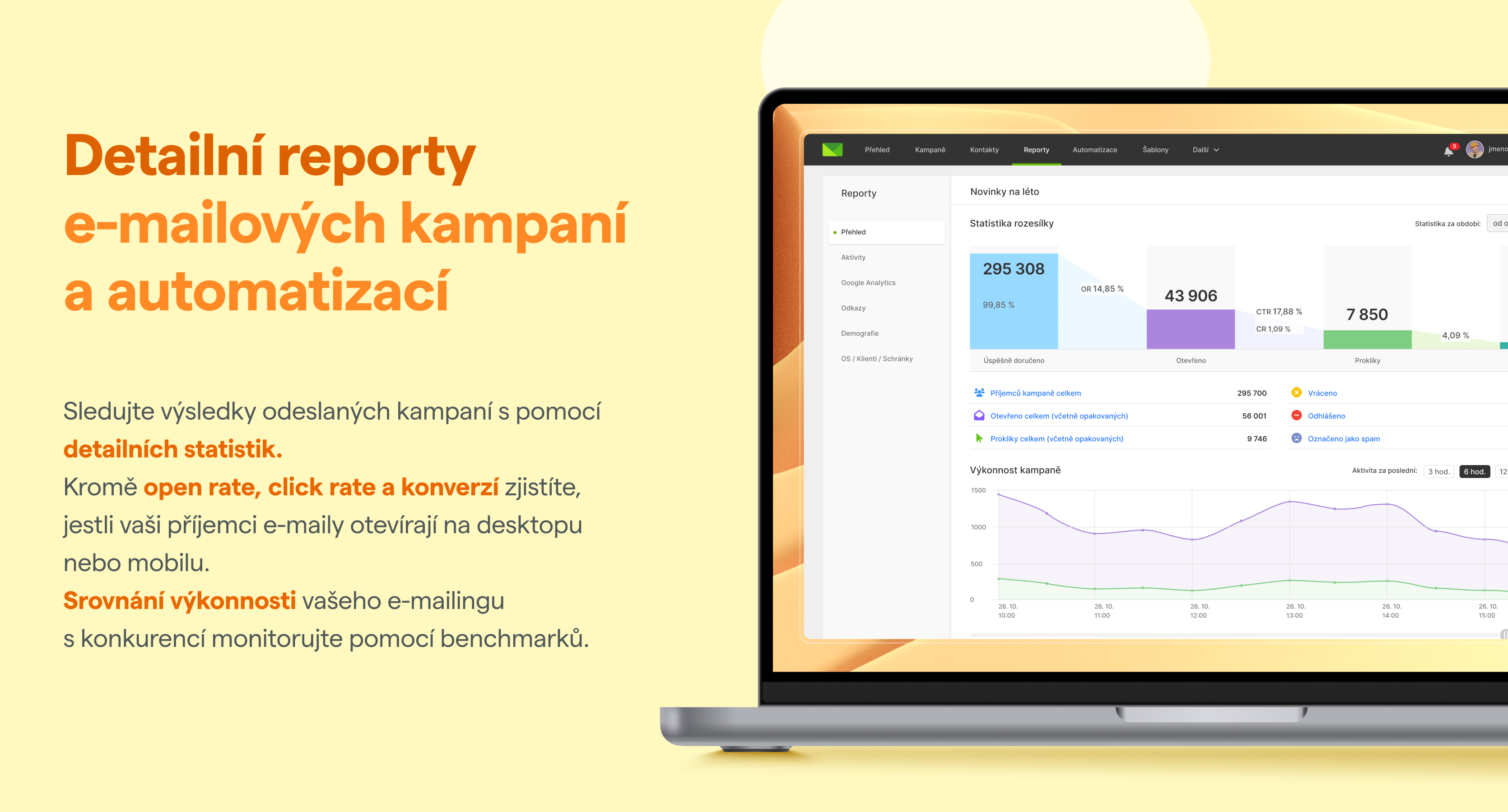 - Detailní reporty kampaní i automatiazací