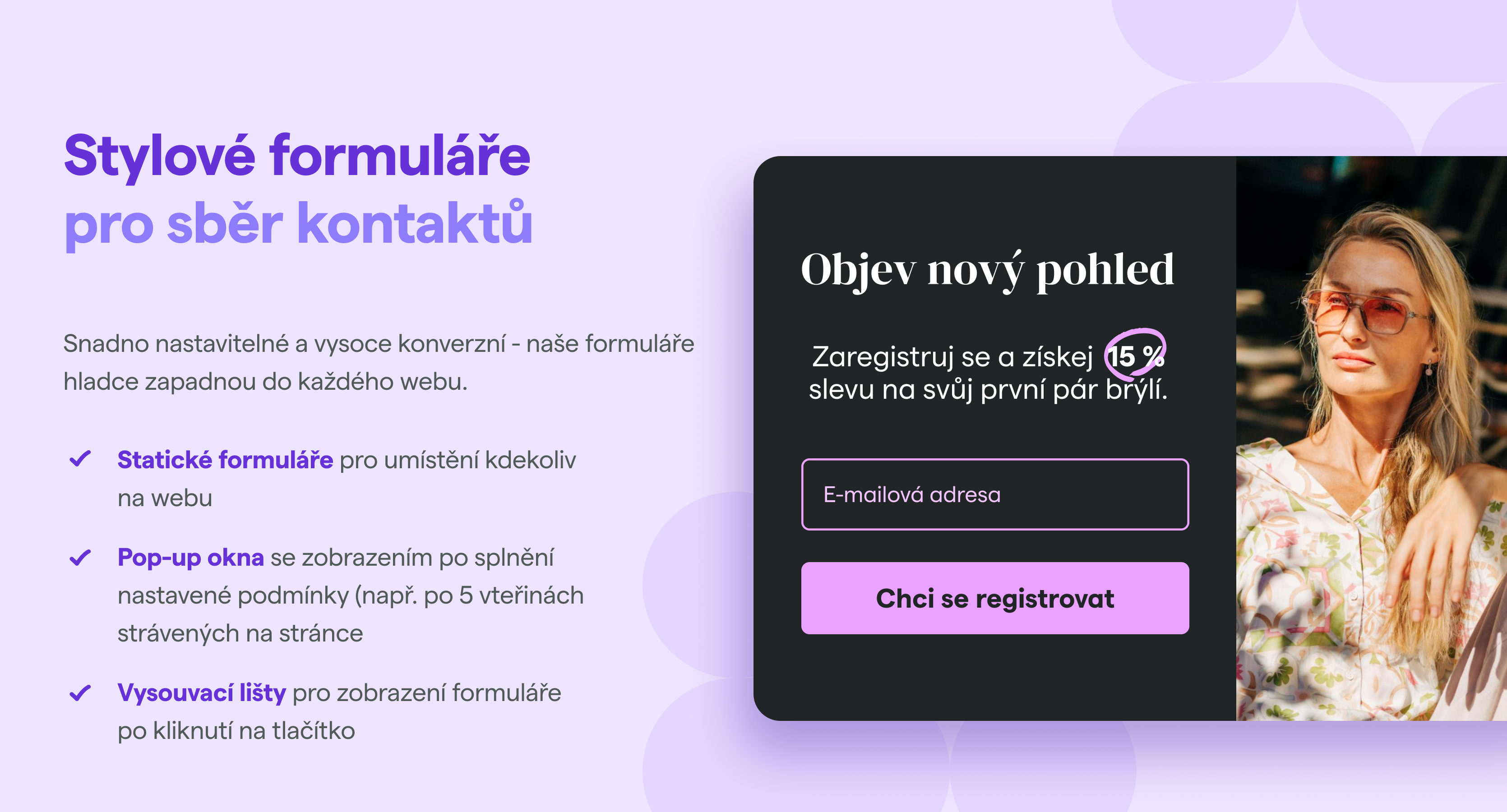 - Formuláře a pop-up okna pro získávání nových kontaktů